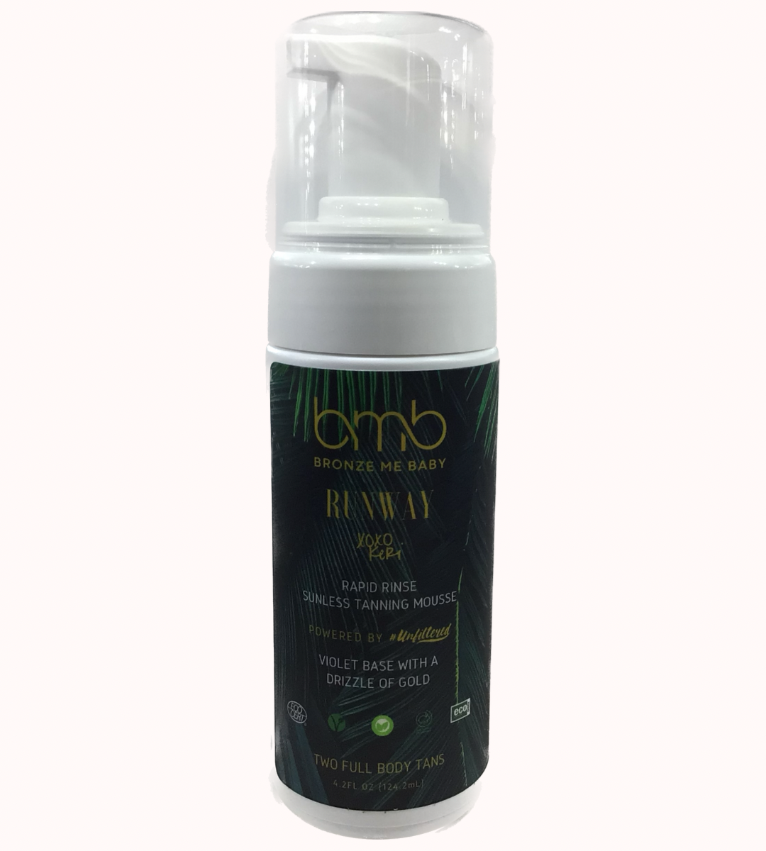 Bronze Me Baby Runway XOXO Keri, is a rapid rinse, violet based premier mousse with a drizzle of gold that delivers a deep and rich color suitable for all skin types.